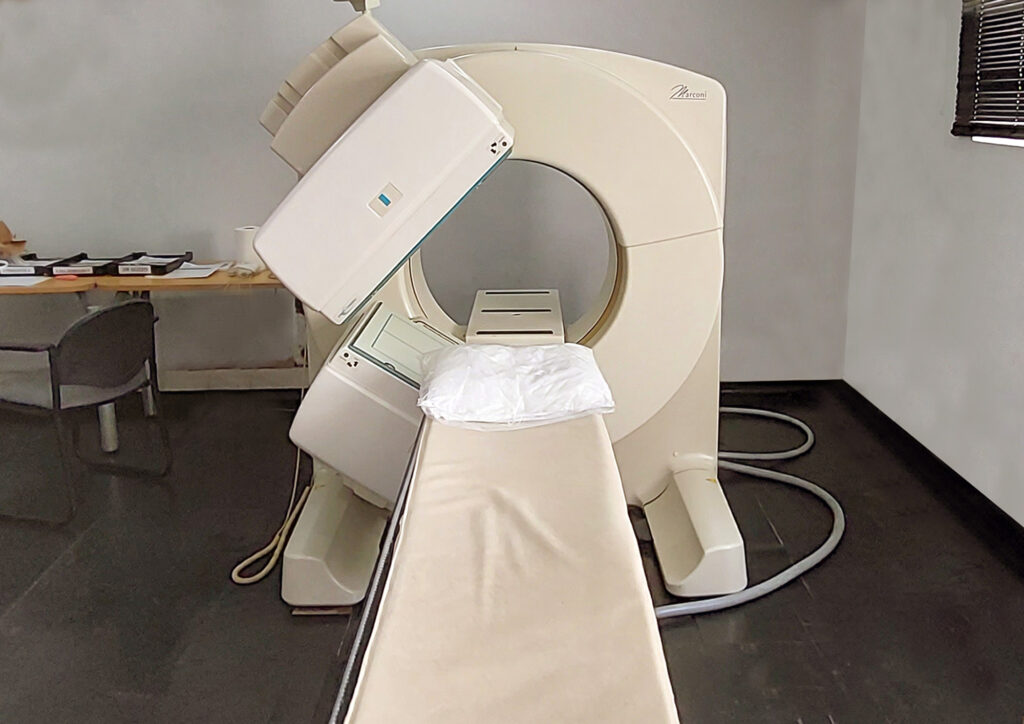 El equipo utilizado para obtener las imágenes se llama Cámara Gamma o centellógrafo. Dicho equipo permite obtener imágenes en colores de todo el cuerpo o del órgano en estudio y reconstruirlas en tridimensión, es decir, muestran como están funcionando los órganos y tejidos explorados o revelan alteraciones de los mismos a un nivel molecular permitiendo el diagnóstico de numerosas enfermedades.
